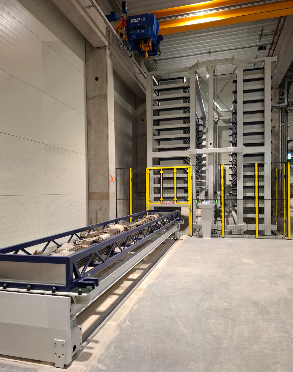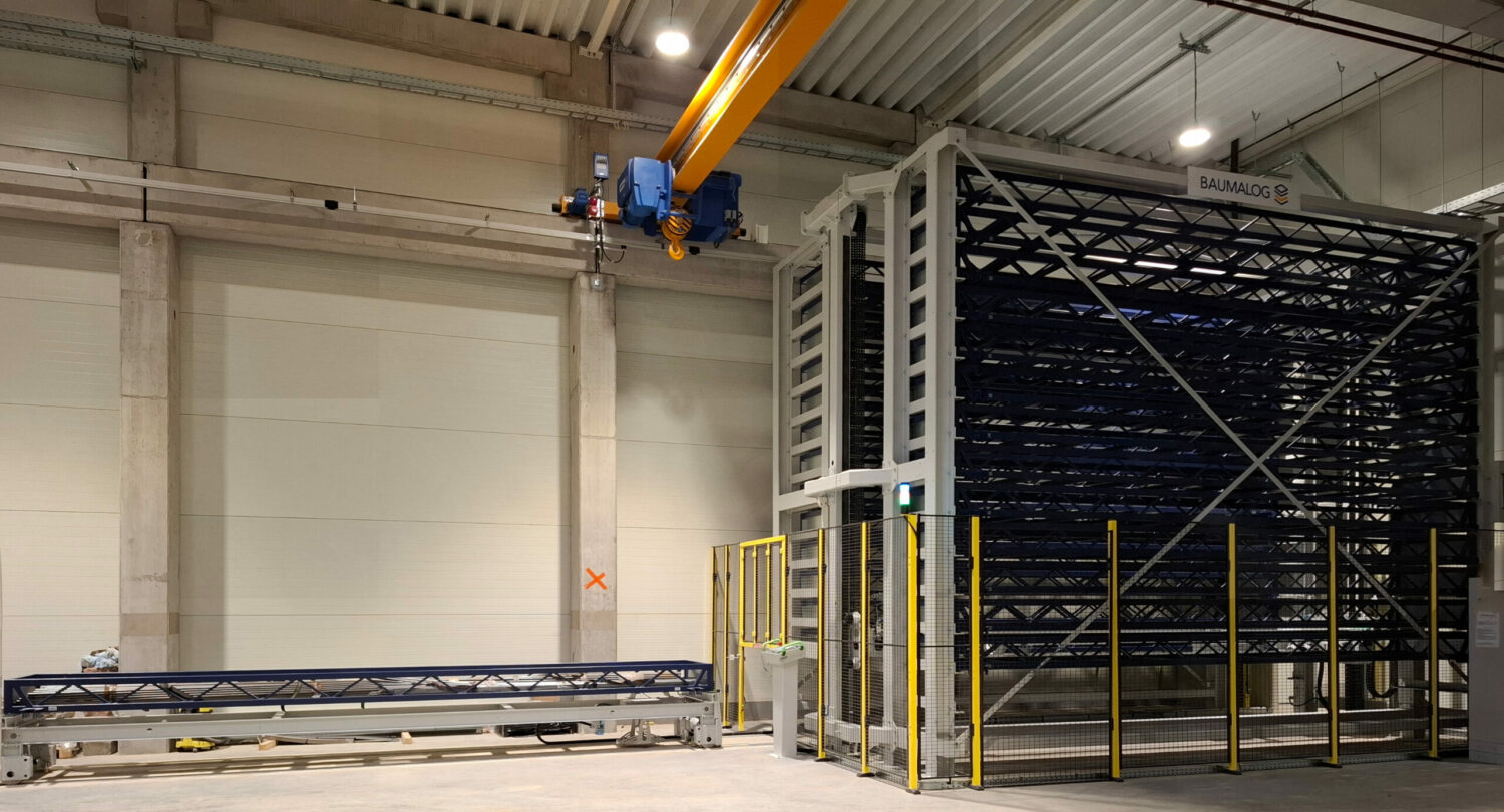 TwinTower® automated storage system for storing and transporting profiles, enabling the storage of over 80 tons of long materials up to 6 m long.