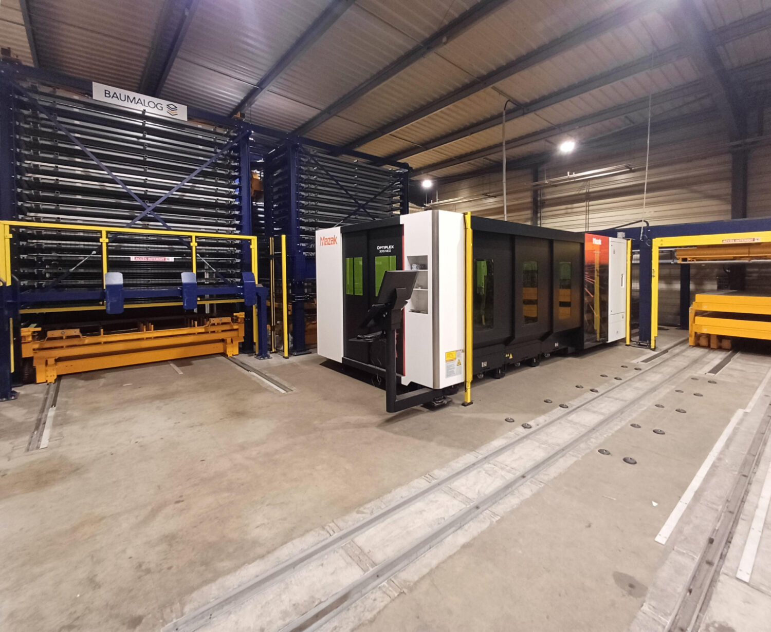 The SmartFlow System has been integrated with the Mazak Optiplex 15 kW laser cutter and Profirst Group CAD/CAM software. The two-level access point and the MultiLoader ensure efficient material flow and the expansion of the system in the future with a second cutting machine.