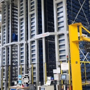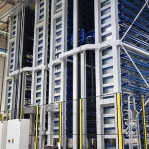 The implementation of an automated storage TransferTower, allowed for the doubling of the storage area. The use of a transfer station allows the transport of shelves between the storage, the station moves at the bottom of the storages and the shelves are delivered to it by means of lifts moving between the storage columns. The connection between the automated shelving units and the transfer station provides access to the entire assortment stored inside the system. The shelving units are arranged in series with respect to the longer side of the shelf.