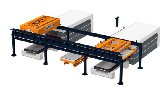 MultiLoader is designed to load and unload laser cutting machines. The system consists of independent working modules, the loading module and the unloading module and a trackway on which the modules move. The loading module, which loads the single sheets onto the laser cutting machine table is equipped in a set of vacuum suctions, dedicated separation and thickness control system. The unloading module consists of two-element forks, which unload the cut pieces from the laser cutting machine table and load onto the transport station or conveyor belt so the cut pieces can get delivered to the operators or on to the shelf of the automated storage system.